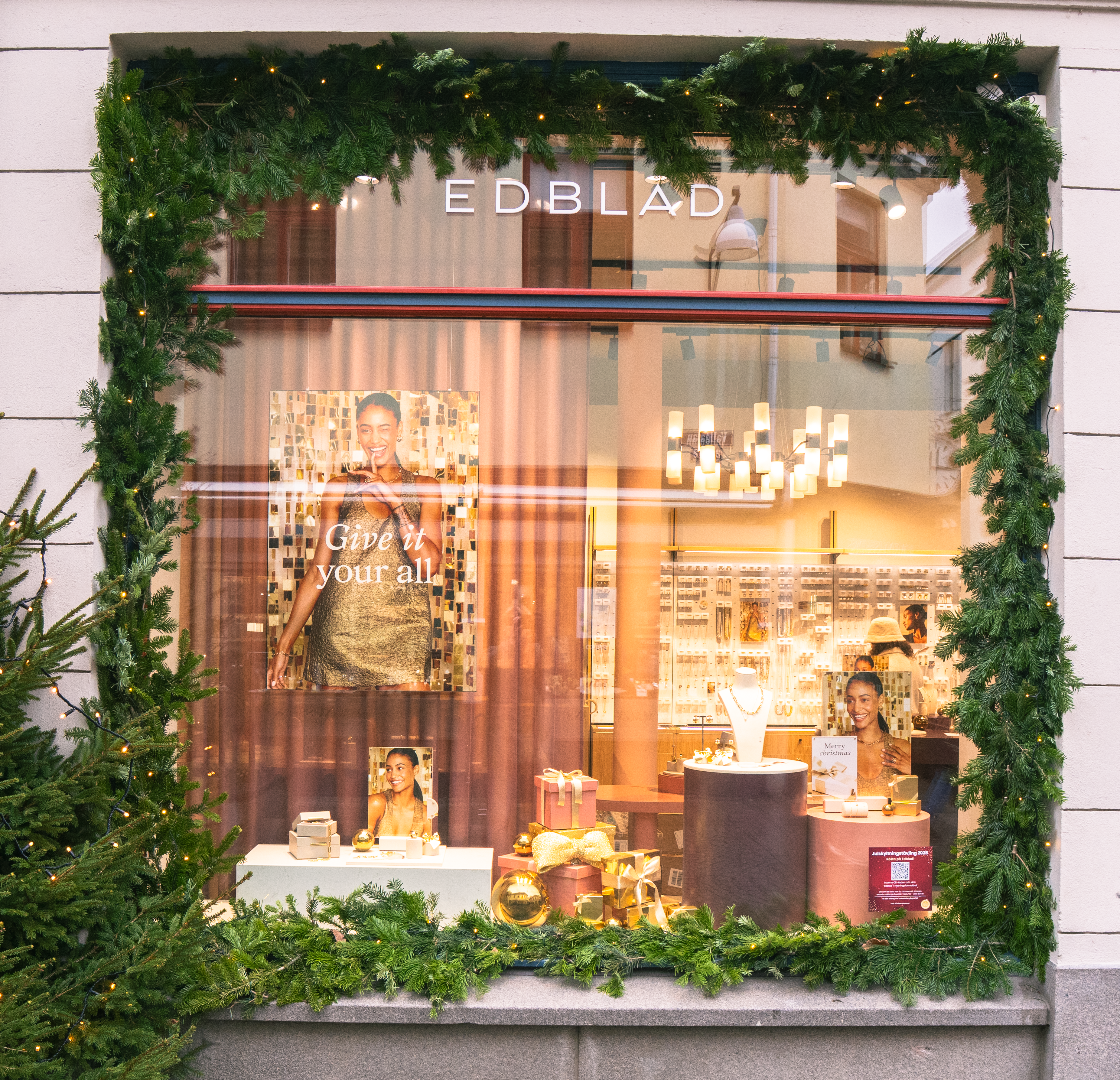 Du hittar en dekal på varje skyltfönster och scannar QR-koden på dekalen för att rösta på din favorit (kostnadsfritt).