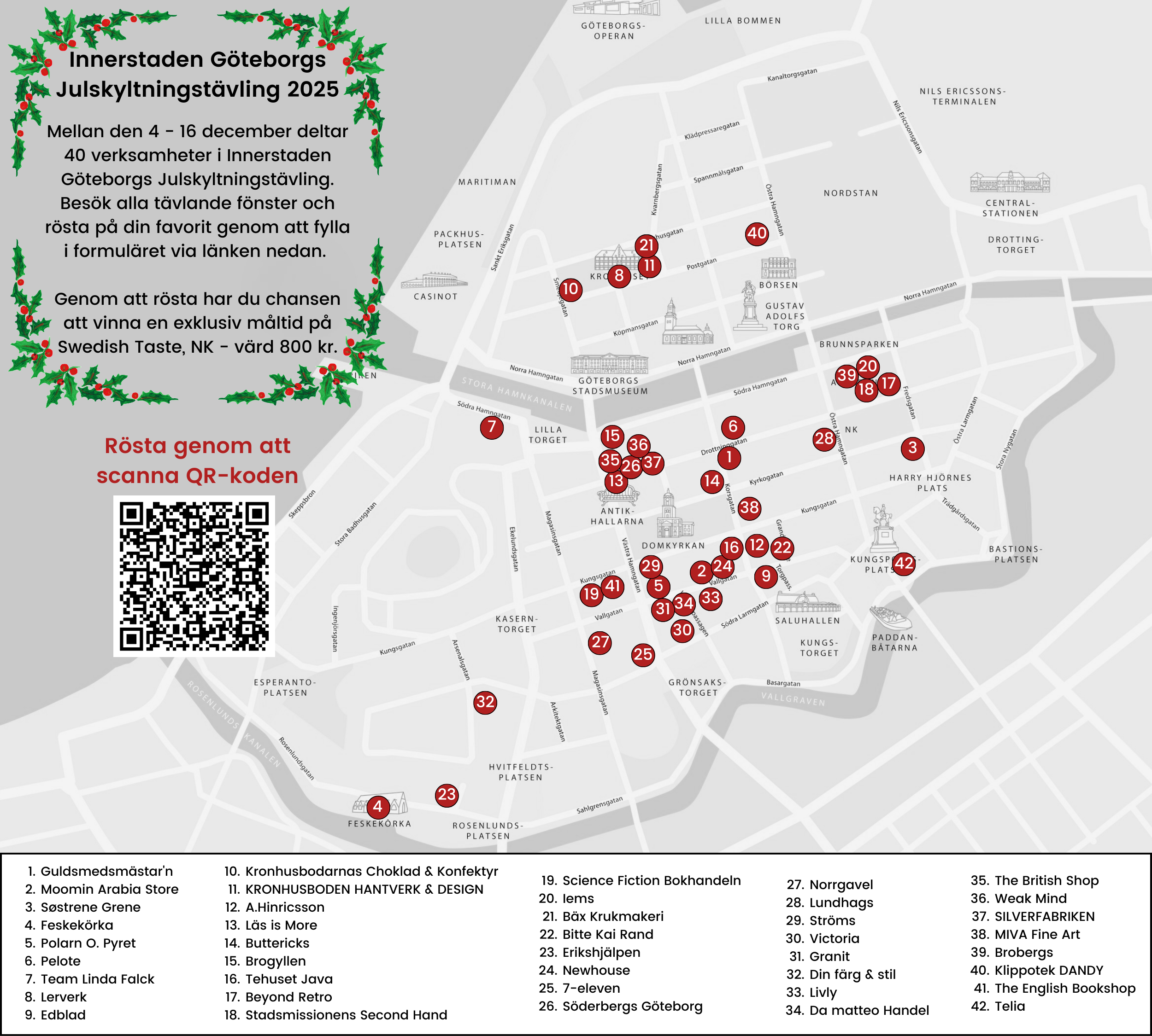 Nu är det dags att rösta fram årets vinnare i Innerstaden Göteborgs Julskyltningstävling! Tävlingen pågår från 4 december fram till 16 december.